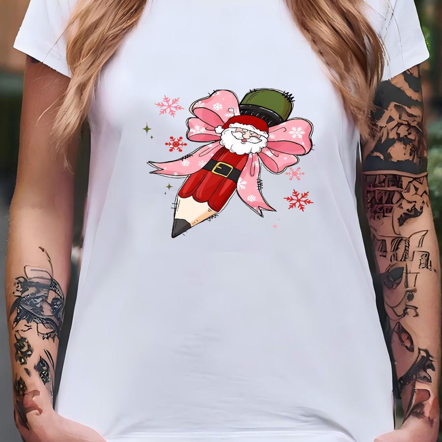 Coquette Teacher Shirt, Teacher Pencil Coquette Bow Shirt, Teacher Christmas Hoodie, Custom Teacher Name, Christmas Bow Tee, Teacher Gift T-shirt