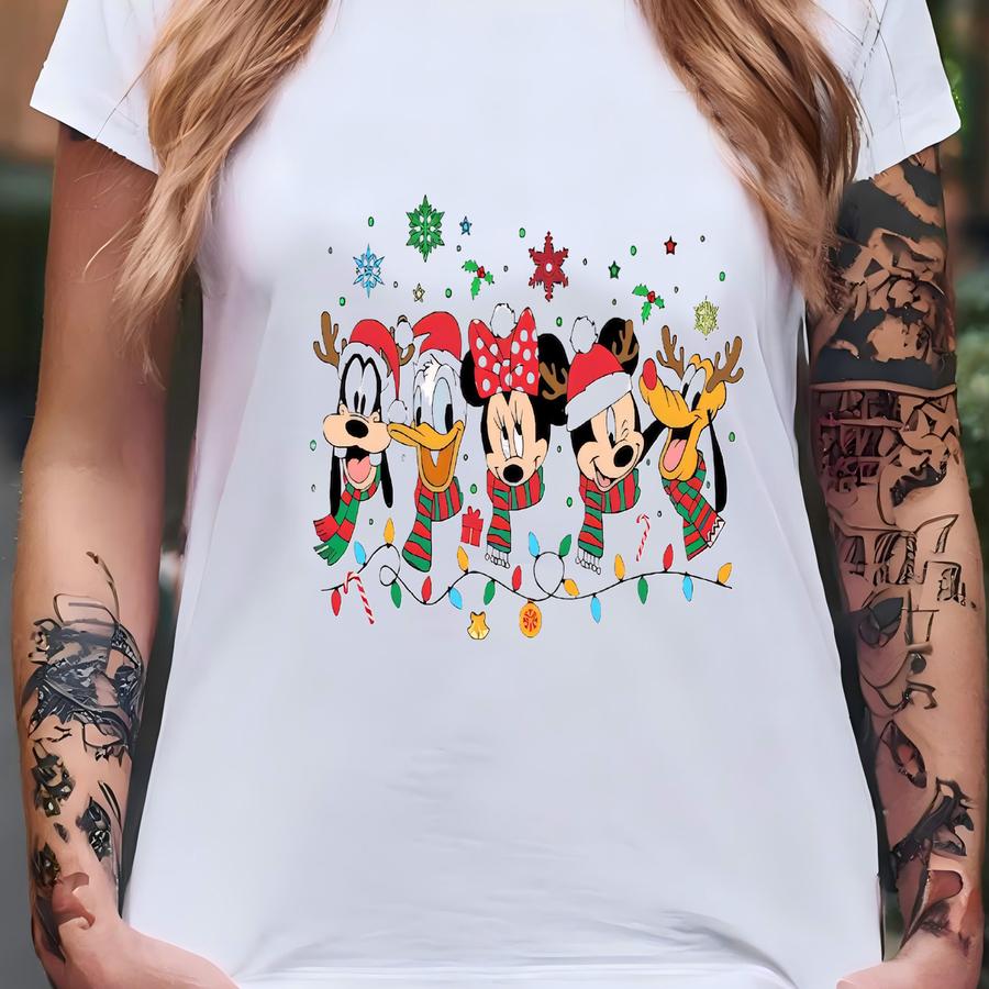 Christmas Lights And Friends Shirt, New Year Vacation 2026 Xmas Gift For Kids And Adults, Land 2025 Santa Hat Snowman T-shirt