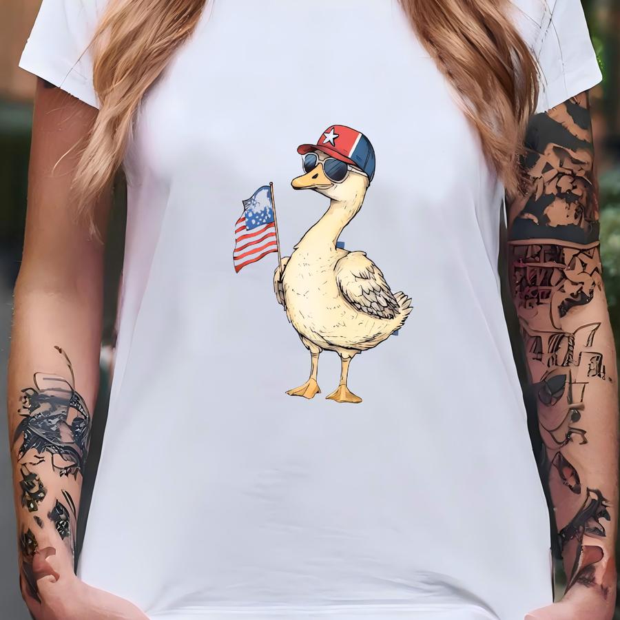 Custom 4th Of July Shirt, Checkered Duck Fourth Of July Kids Shirt, Boys Girls 4th Of July Shirt, Patriotic Kids Shirt, Boy Girl Goose Shirt T-shirt