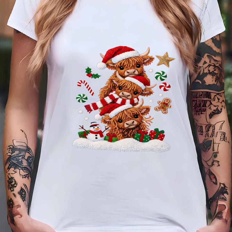 Cow Christmas Sweatshirt, Holiday Farm Hoodie, Cozy Winter Barnyard Sweatshirt, Jolly Cow Graphic Hoodie, Whimsical Snowy Farm Sweatshirt T-shirt