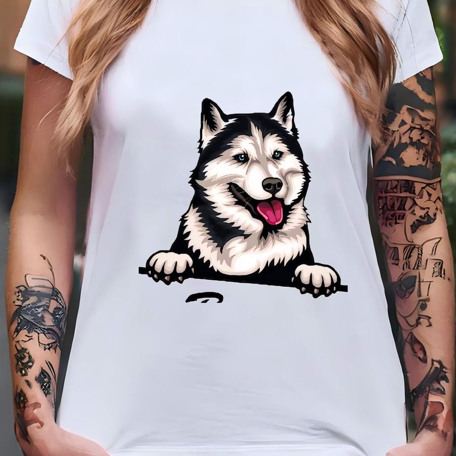 Siberian Husky In Pocket, Custom Sweatshirt For Dog Mom, Mothers Day Gift, Personalized Dog Name Hoodie, Dog Owner Gift Ideas, E426 T-shirt