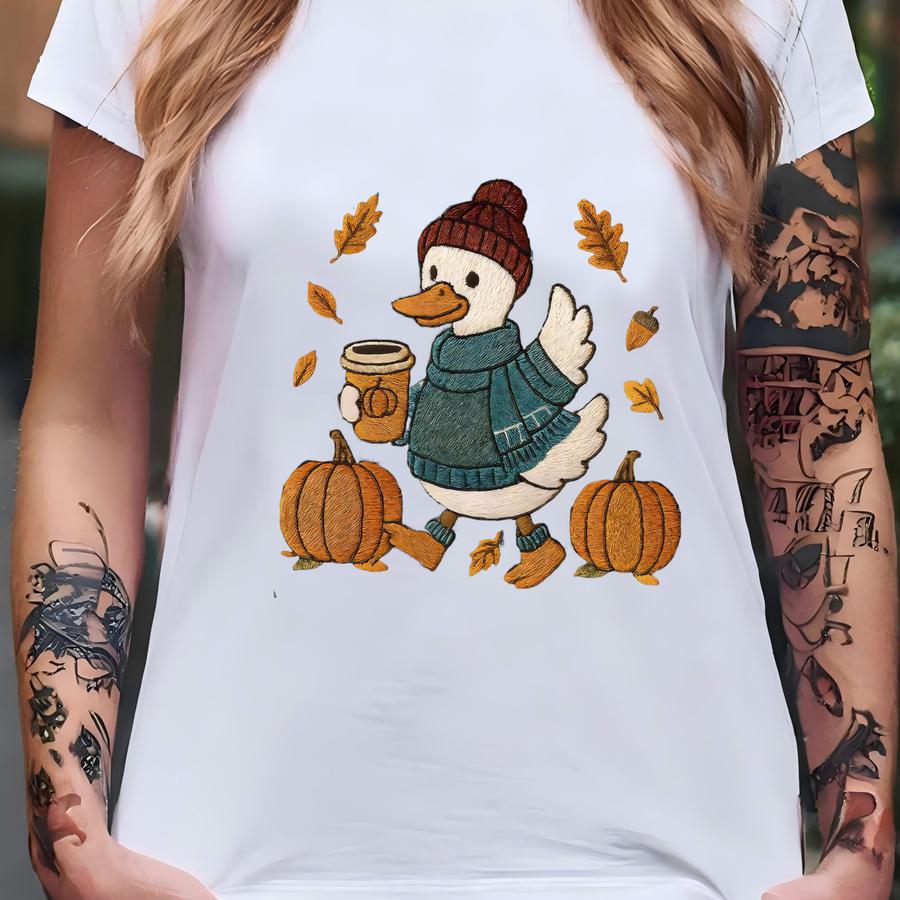 ® Faux Emroidered Just A Fall Goose Shirt, Autumn Cozy Hoodie,fall Vibes Sweatshirt,silly Goose Tee, Goose Thanksgiving Gift T-shirt