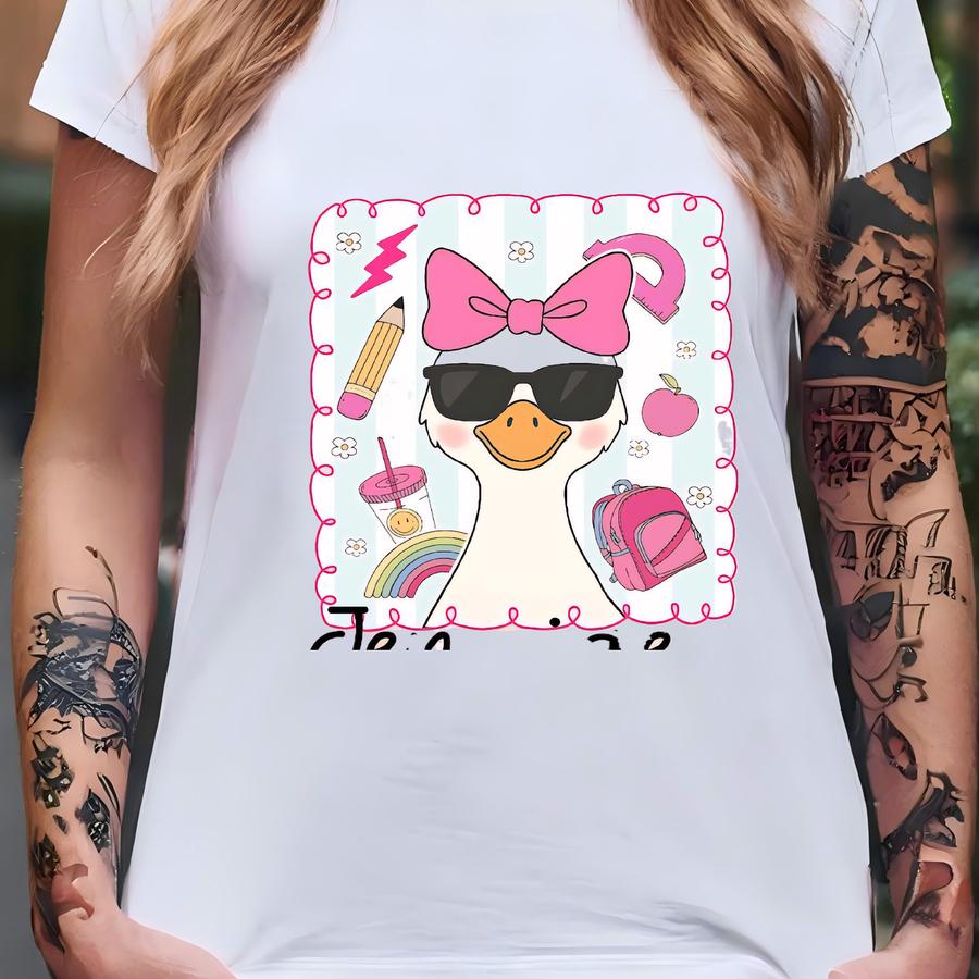 Custom Goose Back To School Tshirt,silly Goose Matching Shirt, Coquette Bow Shirt,teacher Appreciation Tee, Personalized First Day Of School T-shirt