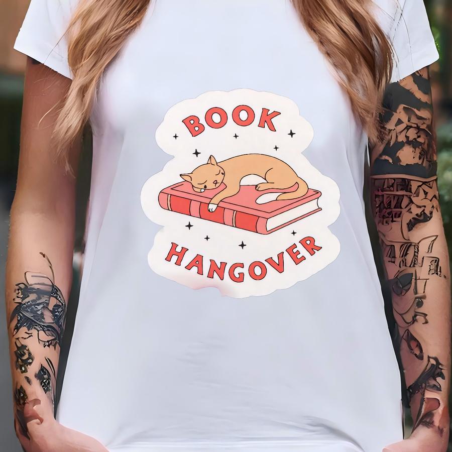 Cat Book Hangover Sticker | Cat Book Hangover Decal | Book Aesthetic| Decals For Bookworm | Bookish | Kindle | Laptop T-shirt