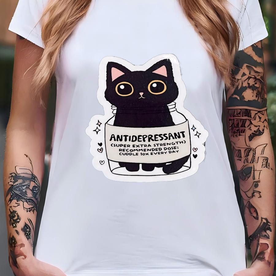 Black Cat Anpressant Sticker | Cute Black Cat | Decal For Kindle | Decal For Laptop | Girly | Mental Health T-shirt
