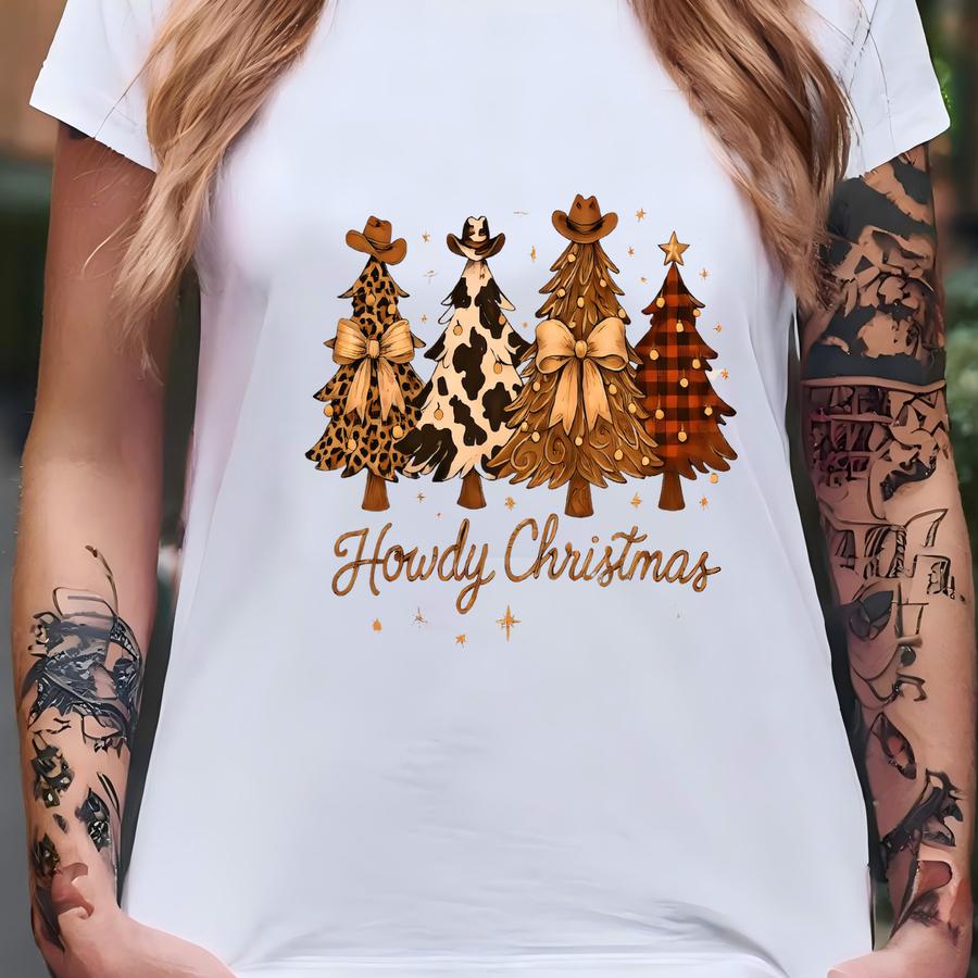 Western Howdy Christmas Tree Sweatshirt, Leopard Christmas Tree Sweatshirt, Howdy Christmas Sweatshirt,cowboy Santa Sweatshirt, Cowboy Tree T-shirt