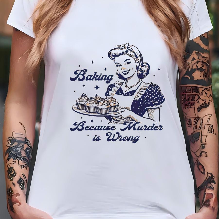 Baking Because Murder Is Wrong Apron, Funny Baking Apron, Baking Apron, Gift For Bakers, Baker Gift, Baking Gift For Mom,kitchen Apron T-shirt
