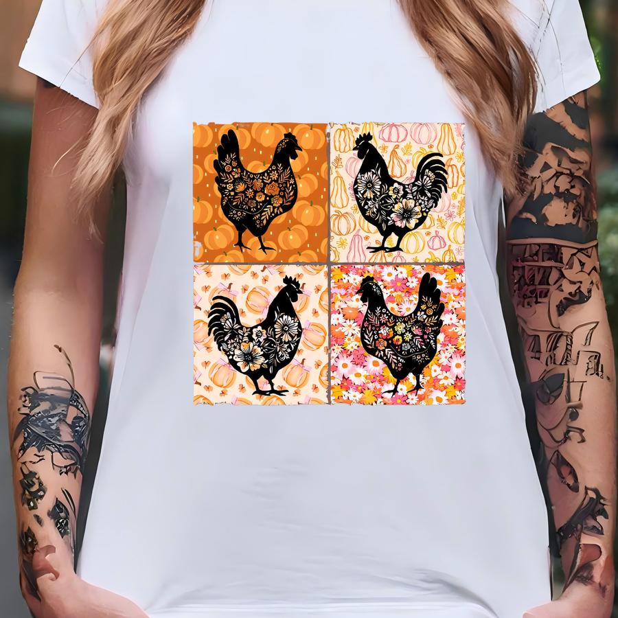 ® Chickens Shirt, Retro Farmhouse Floral Backyard Chicken Tee, Cottagecore Aesthetic Clothing, Chicken Gift For Her T-shirt