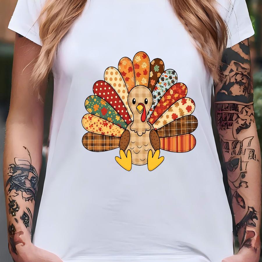 ®faux Patchwork Turkey Shirt,faux Turkey Thanksgiving Shirt,fall Shirt Thanksgiving Turkey Tee,faux Patchwork Look Shirt T-shirt