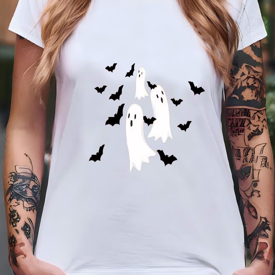® Flying Ghosts And Bats Shirt, Halloween Pocket Shirt, Spooky Shirt, Witch Shirt, Pumpkin Shirt, Skeleton Shirt T-shirt
