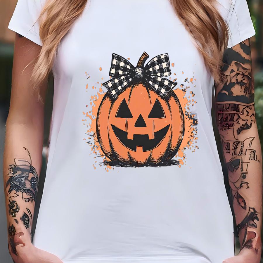® Coquette Halloween Hoodie, Women's Pumpkin Bow Tee, Retro Halloween Pumpkin Tshirt,preppy Jack O Lantern Shirt T-shirt