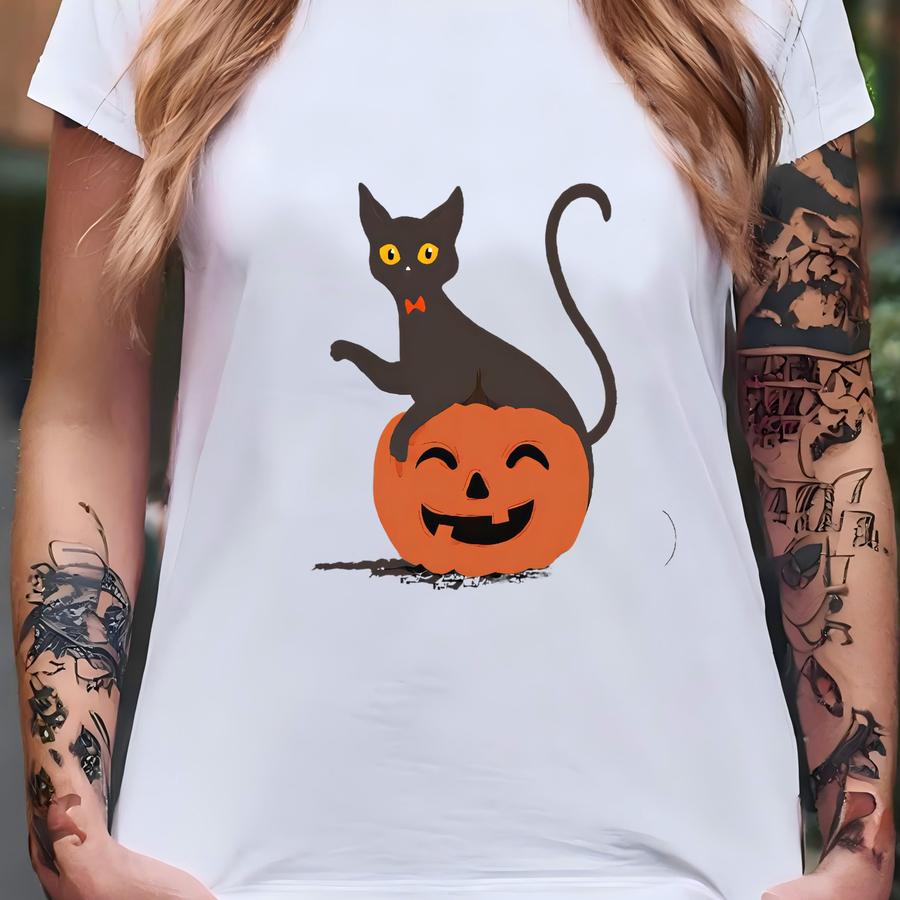 Black Cat Pumpkin Halloween Shirt: Fall Graphic Tee T-shirt