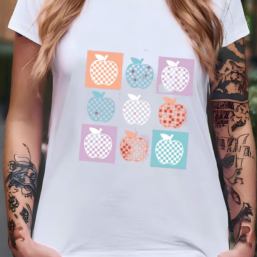 Retro Teacher Shirt: Apple Checkered Design T-shirt