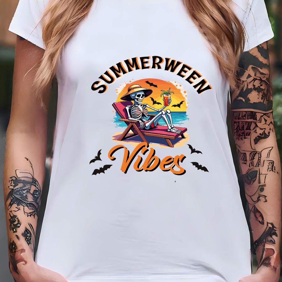 Summerween Skeleton Hoodie: Spooky Beach Halloween Tee T-shirt