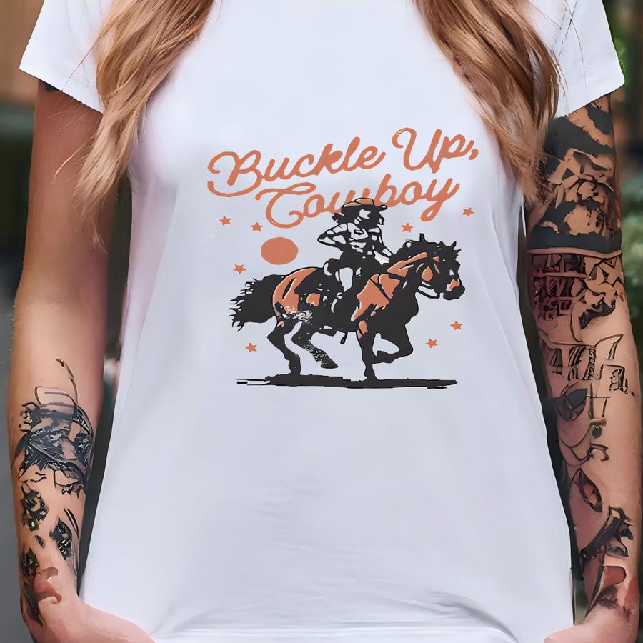 Buckle Up Cowboy Graphic Tee, Western Graphic Tee, Vintage Graphic Tee, Nashville Shirt, Women's Graphic Tee, Rodeo Shirt, Rodeo Graphic Tee T-shirt
