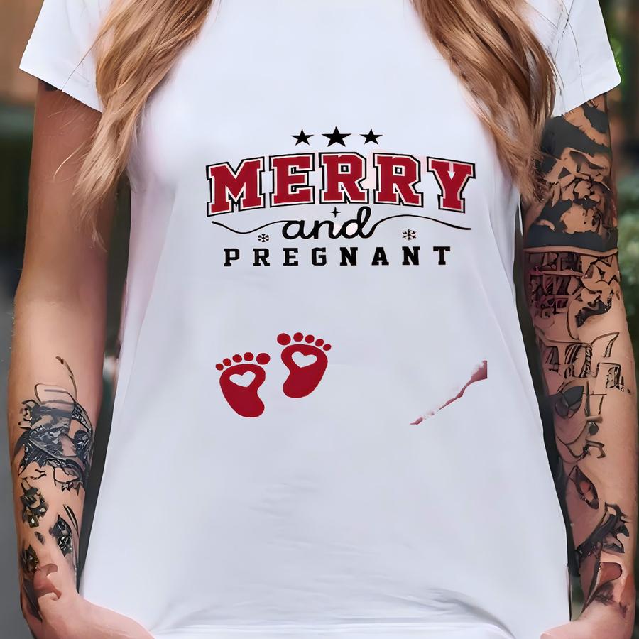 Christmas Pregnancy Reveal Sweatshirt: Merry And Pregnant Hoodie T-shirt