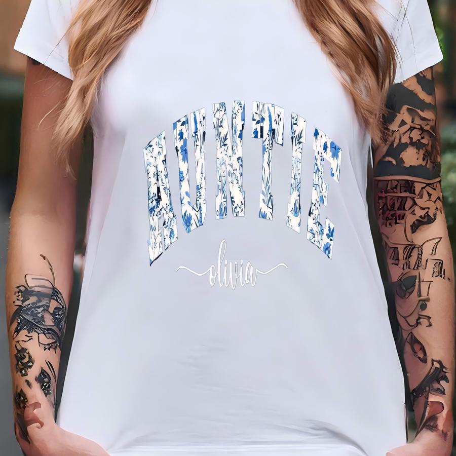 Custom Auntie Vneck Shirt: Personalized Nieces Nephews Names, Pregnancy Reveal Tee T-shirt
