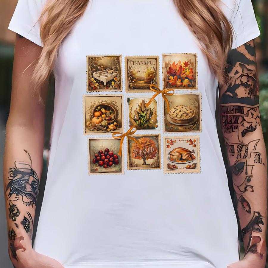 Thanksgiving Stamps Sweatshirt, Fall Vibes Sweatshirt, Seasonal Sweatshirt, Postage Stamp Shirt, Thanksgiving Day Shirt, Retro Falls Shirt T-shirt
