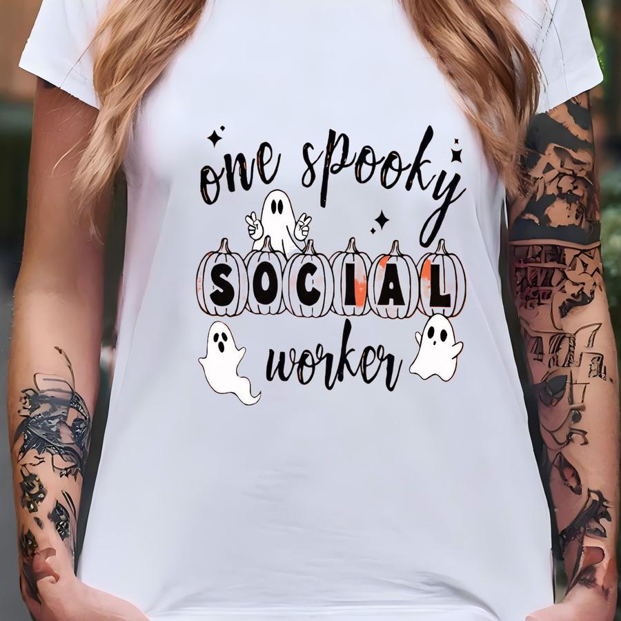 Spooky Social Worker Halloween Shirt, Retro School Counselor Tee, Funny Lcsw Ghost Pumpkin Costume, Funny School Counselor Ghost Costume T-shirt