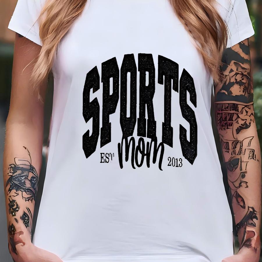 Custom Sports Mom Sweatshirt | Glitter Applique Y | Personalized Name Sport Icon | Mom Life Gift | Team Spirit Shirt T-shirt