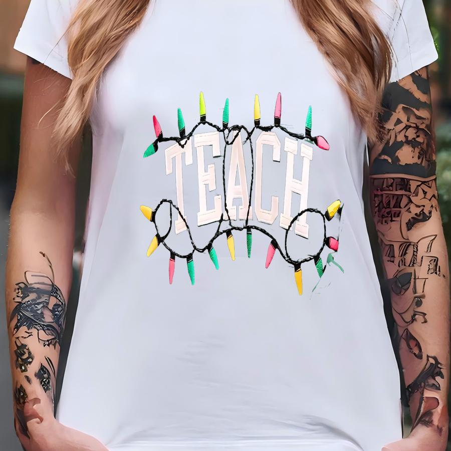 Christmas Lights Teach Sweatshirt, Teacher Christmas Y Shirt, Christmas Gift For Teacher T-shirt