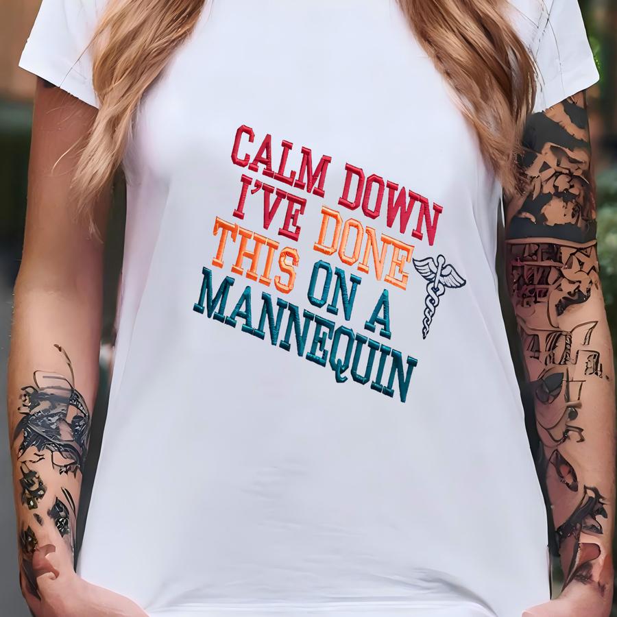 Calm Down I've Done This On A Mannequin Sweatshirt, Sarcastic Nurse Y Shirt, Nursing School Tee, Sassy Nurse Gifts T-shirt