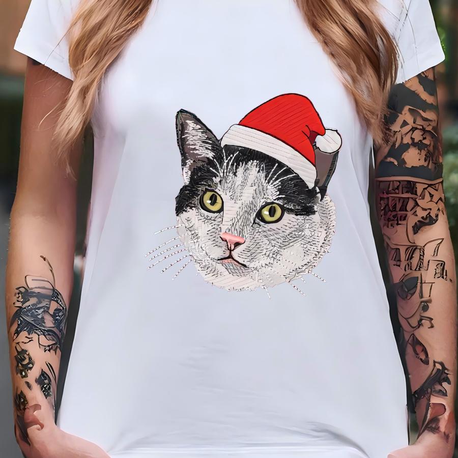Custom Pet Portrait Quarter Zip Sweatshirt, Personalized Dog Santa Hat Y Shirt, Dog Mom Christmas Gifts, Dog Lover Tee T-shirt