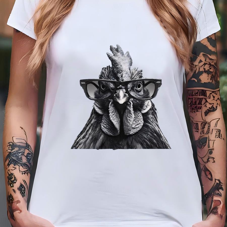 Chicken Wearing Glasses Unisex Shirt, Fowl Eyewear Tee, Animal Lover Gift, Funny Graphic Top, Hipster Bird Apparel, Cool Chick Tshirt T-shirt