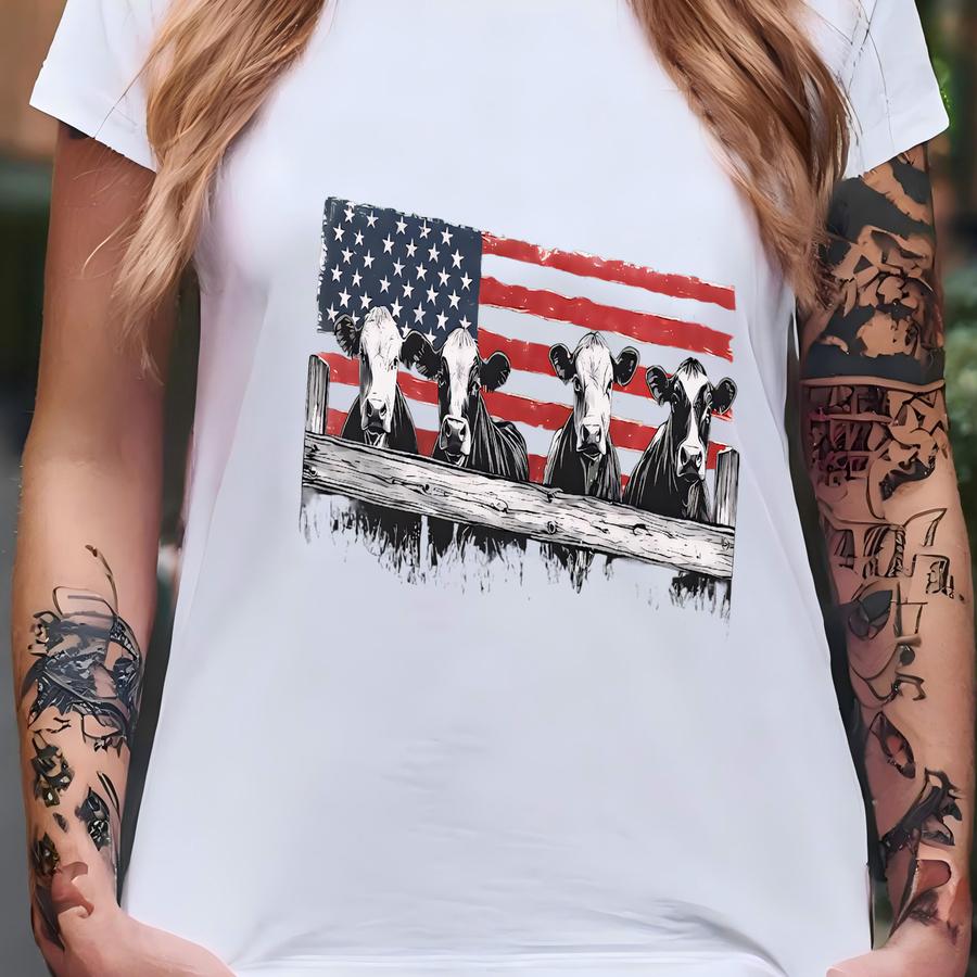 Western Shirt, Cows Shirt, , Cow Lover Shirt, Funny Cow Shirt, Farm Lover Shirts, Farm Animal Shirt, American Flag T-shirt