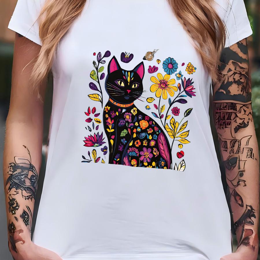 Cat Shirt, Floral Cat Shirt, Purr Shirt, Cat Mom Floral Cat Tee Cat Lover Shirt Animal Lover Tee Cat Lovers Shirt Gift For Mom Gift For Dad T-shirt