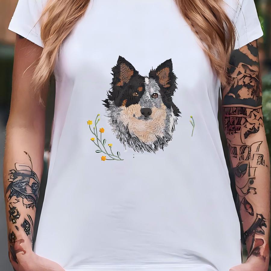 Custom Dog Portrait Flower Sweatshirt, Custom Dog Sweatshirt, Pet Loss Gift, Gift For Dog Owner, Custom Pet Portrait Crewneck T-shirt