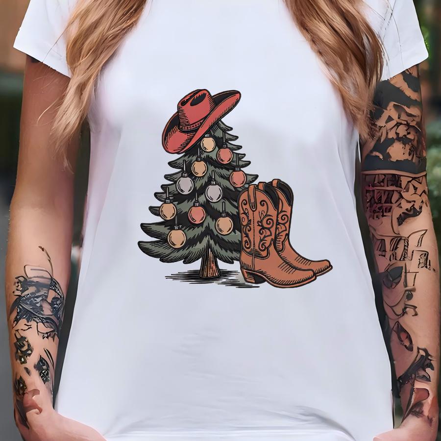 Cowboy Christmas Tree Sweatshirt: Western Boots Christmas Tree Sweatshirt T-shirt