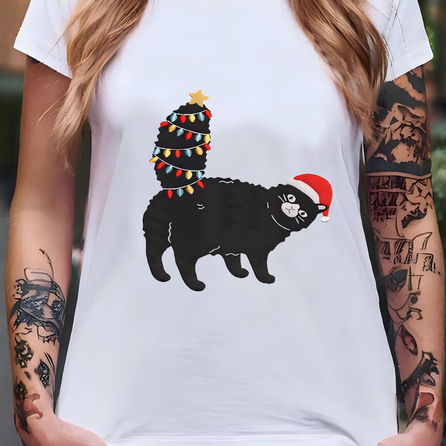 Christmas Black Cat Sweatshirt, Black Cat Christmas Shirt, Cat Lover Crew Neck, Cat Lover Gift, Cat Mom Sweater, Unisex Sweater T-shirt