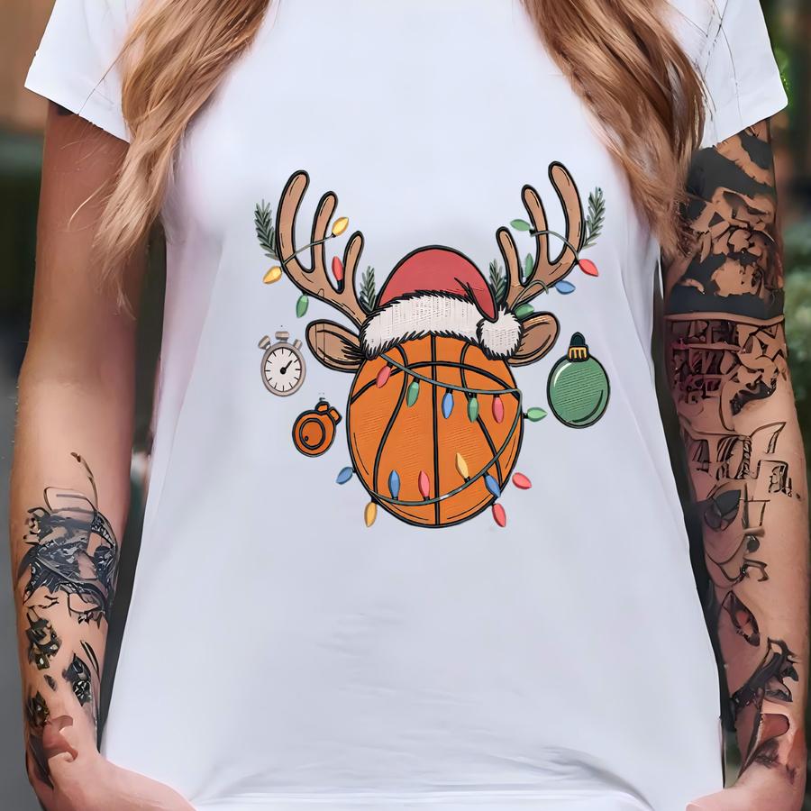 Basketball Reindeer Christmas Sweatshirt: Funny Sports Santa Antlers Sweatshirt T-shirt