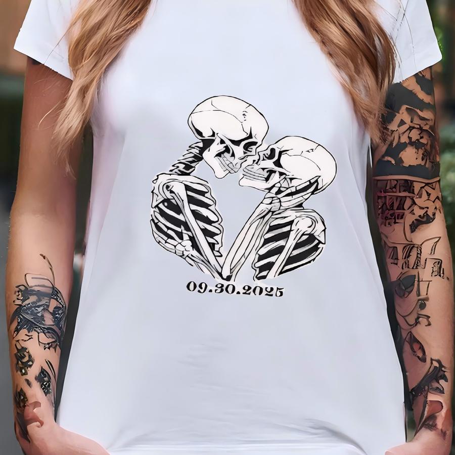 Custom Matching Skeleton Couple Sweatshirt, Personalized Halloween Sweater, Initial Name On Sve, Funny Skull Lover Shirt,newlyweds Gift T-shirt