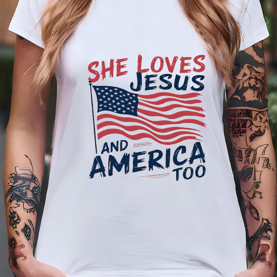 She Loves Jesus And America Too Shirt, ®4th Of July Flag Shirt, Christian 4th Of July Shirt, Patriotic Tshirt,jesus Lover Gift T-shirt
