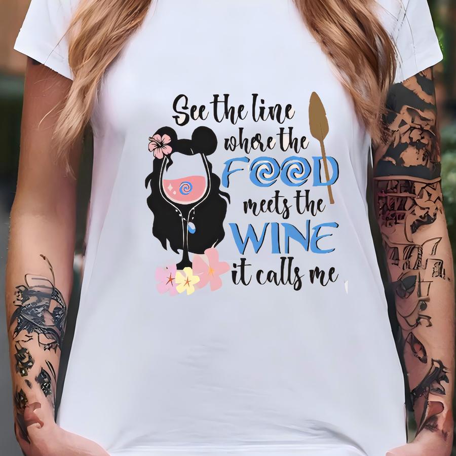 See The Line Where The Food Meets The Wine It Calls Me Shirt, Moana Trip Hoodie, Food And Wine Festival Tee, Land Family Shirt T-shirt