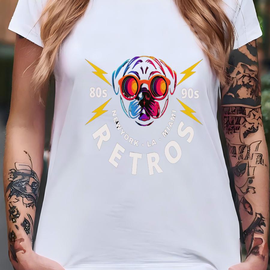Retro Neon Pug Hoodie: 80s/90s Style Graphic Tee T-shirt