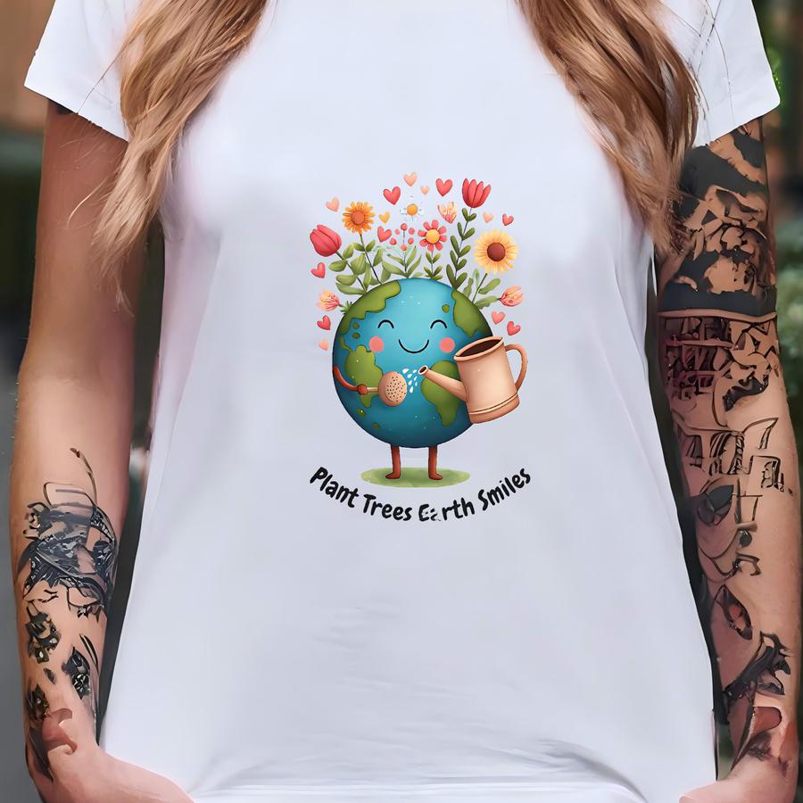 Cute Earth Tee Reusable Shopping Inspirational Gift For Nature Lovers Everyday Carry With Happy Planet Art T-shirt