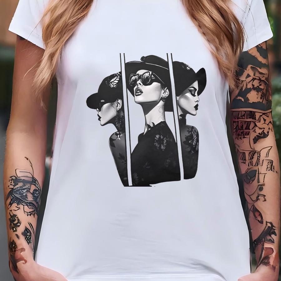 Woman Art Print Tee: Chic Graphic Handbag, Eco-friendly T-shirt