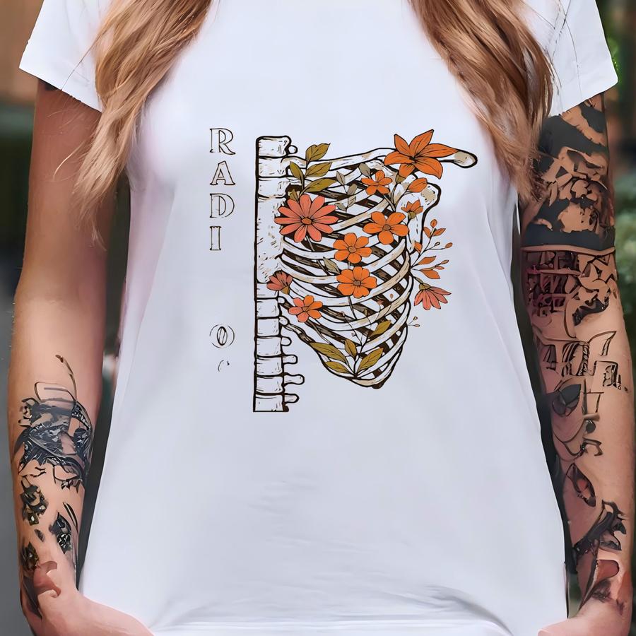 Custom Rad Tech Floral Skeleton Sweatshirt, Radiology Skeleton Sweatshirt, Rad Tech Sweatshirt, X-ray Tech, Radiology Graduation Gifts T-shirt