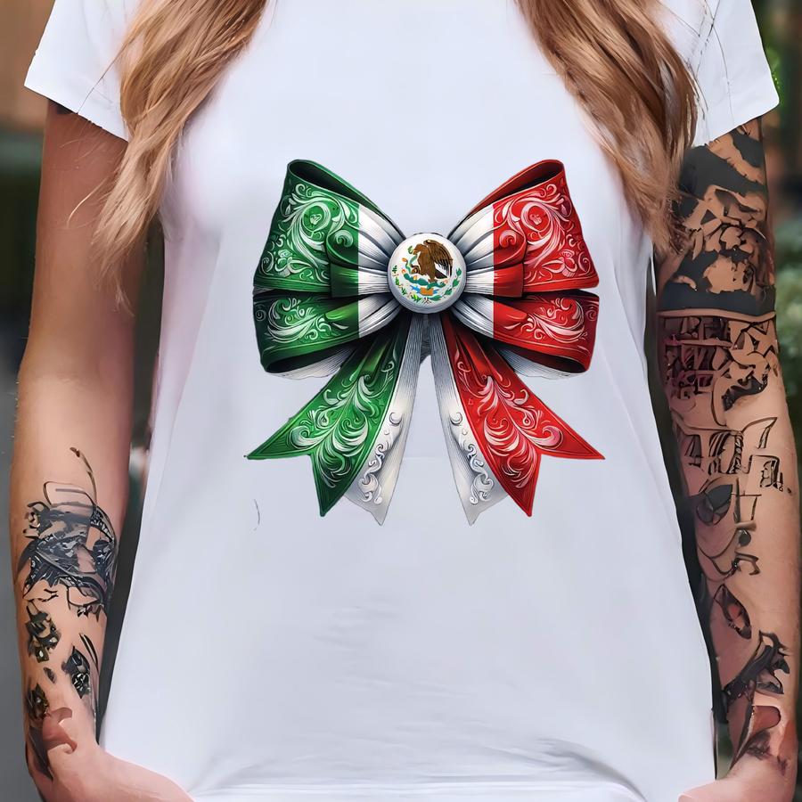 Retro Comfort Mexican Flag Shirt, Coquette Bow Mexico Hoodie, Mexican Flag Sweatshirt, Mexican Women Gift, Coquette Bow Mexico Shirt T-shirt