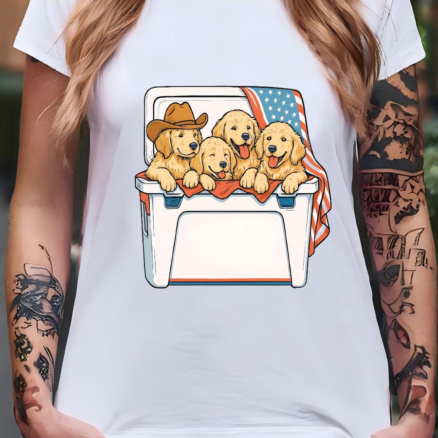 Retro Comfort Golden Light Hoodie, 4th Of July Shirt, Retro American Golden Retriever Tee, Independence Day Gift, Patriotic Dog Outfit T-shirt