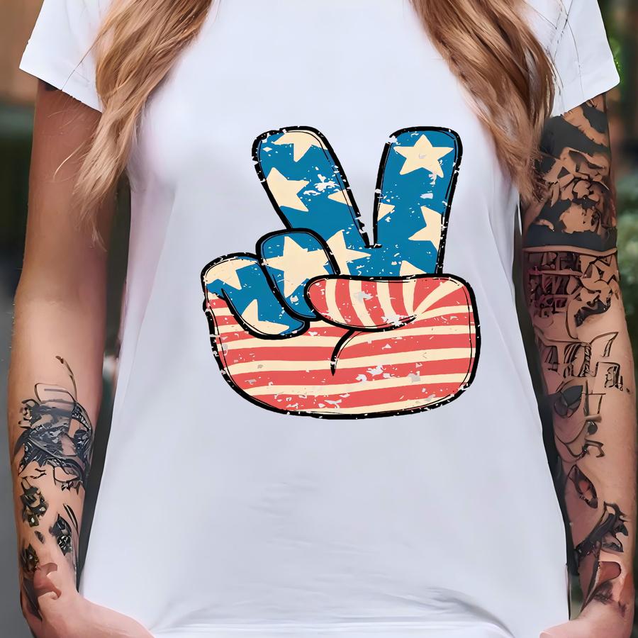 Retro Comfort America Peace Hoodie, American Women Shirt, 4th Of July Tee, Patriotic Mom Gift, Usa Flag Peace Shirt, Freedom Tee T-shirt