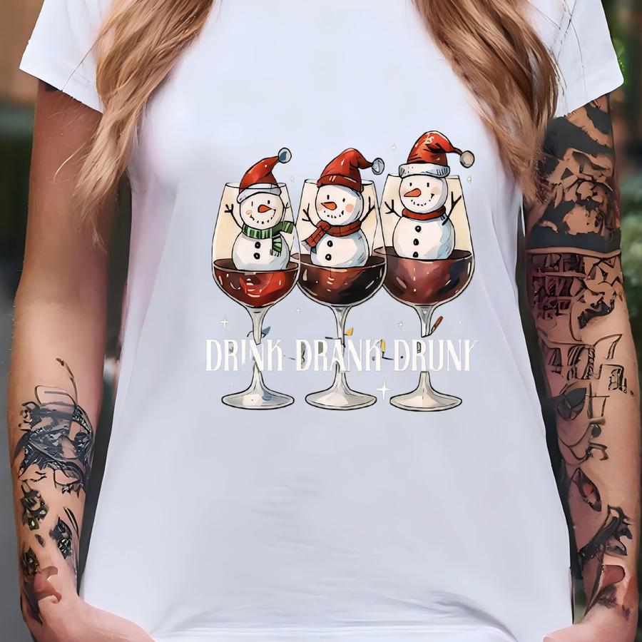 ® Drink Drank Drunk Shirt Christmas Season Shirt Christmas Snowman Shirt Retro Christmas Matching Shirt Christmas Gifts T-shirt