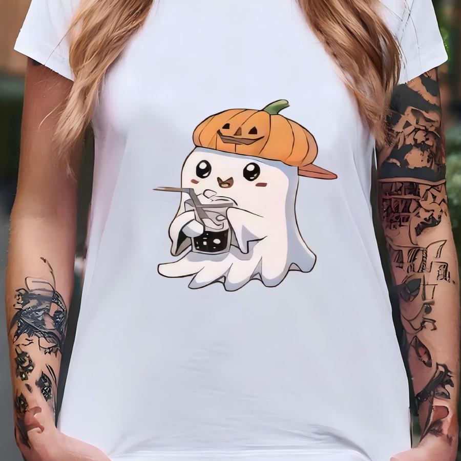 ® Iced Coffee Ghost Shirt Cute Ghost Shirt Coffee Lover Shirt Halloween Gifts Spooky Season Shirt Pumpkin Season Shirt T-shirt