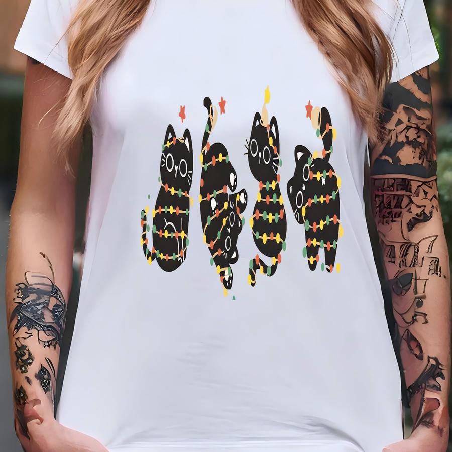 Christmas Black Cat Sweatshirt, Black Cat Christmas Shirt, Cat Lover Gift, Cat Mom Sweater, Kitten Christmas Shirt,xmas Gift, Holiday Hoodie T-shirt