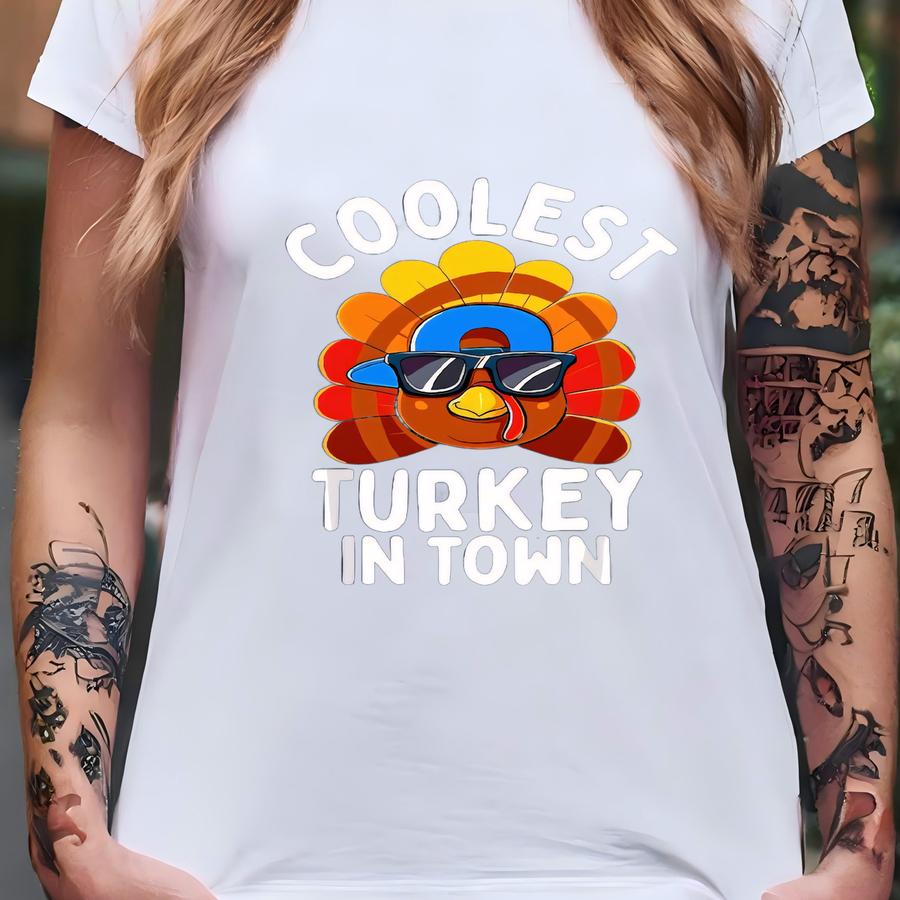 Coolest Turkey In Town Shirt, Thanksgiving Shirt, Thanksgiving Sweatshirt, Turkey Shirt, Fall Shirt, Pumpkin Shirt, Friendsgiving Shirt T-shirt