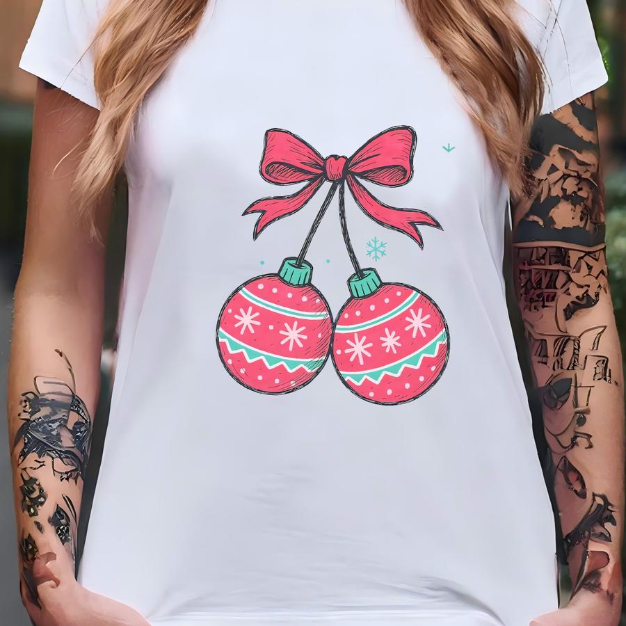 Retro Christmas Shirts, Coquette Christmas Cherries Hoodie Coquette Christmas Ornaments Hoodie Festive Holiday Tee Winter Top T-shirt