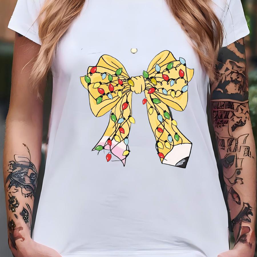 Christmas Coquette Bow Teacher Sweatshirt, Christmas Teacher Gift, Christmas Pencil Bow Teacher Gift Sweatshirt, Christmas Teachers Outfit T-shirt